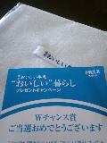 【おいしい牛乳】のプレゼントキャンペーンに応募したら。。。(パパが)『ご当選おめでとうございます』って届きましたキッチンタオルなぁ~んだWチャンス賞か。。。 もっとイイものが当たる予定だったのになぁ~ 。。。って私はこういうの面倒で応募しないんだけど。。。『プレゼントキャンペーンやってるよぉ~』って情報だけ提供パパがマメにバーコード集めてます『パパの名前でも応募してるのに~当たるのはママの名前ばっかり』ってパパがブツブツ言ってます当たらない人もいるんだもん。。。Wチャンス賞でもめでたい 何て強運の持ち主なのアタシ 明治さん ありがとう~