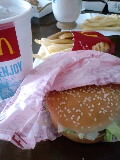今日も朝寝坊。。。お昼はパパがマックへ買出し初マックです。。。ダラダラしてるからお腹もすかないんだけどね。。。いつものエビフィレオ な~んかイマイチの味。。。 ソースの味がしなくてあれソースはって思わず中を開いて確認したわよ。。。 ソース入ってたけど。。。 忙しすぎて作る人が手抜いたのって感じ お腹いっぱいなのに『夕ご飯何にする』ってパパ。。。 考えられないから『お茶漬け~』 なんか。。。眠くなってきた 昼寝でもしようかしら。。。