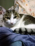 チビといいます大晦日に父に洗ってもらってきれいになってますなかなかいい顔してます。。。ソファーの隅っこが指定席。。。実家の主 父が散歩に行くとひょこひょこ後からついて歩くそうで『猫の散歩なんて見たことないわぁ』と珍しがられるようです。。。 昔からうちのムスコのことが大好きで2階への階段を少しのぼっては振り返り『一緒に2階へ行こう』と誘います。。。2階で何がしたいのやら。。。 他の者は決して誘われません。。。 母の病気が見つかる前普段はそんなことしないのに頻繁に母のそばに来てお腹に頭をこすり付けてきたそうで。。。『お腹に病気があるって知らせてくれた』って信じてる母 チビは守り神だそうです。。。 チビのおかげで両親は癒されてるようで感謝これからも よろしくね