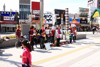 昨日はシスレッスン。 朝、私がでかけた後に、じゅんすけ達が家に寄って ポリタンクや物資をもっていくので、 置手紙をして♪ レンタカーで行くので、9時過ぎからしか出発できない。。 とにかく、手紙とカンパを置き、家を出発! そして、今回はシスレッスンとかぶり行けないけど、 ~祈り~みんなで歌おう!復興支援CD制作プロジェクト-http://blog.goo.ne.jp/zerokidsの練習も同じ時間に 中野であって、私の日記をみてくれた方や、 メイ先生のスクールの生徒さんが行ってくれたようです! ありがとうございます! そんなわけで、回りも同時進行で、 じぶんたちができること。 みんなの支援リレーをしています 高円寺グランブルーでのレッスン。 ずっと、春の本番に向けて練習してきた曲もあるけど、 本番が中止になったりして、、 この日は、募金活動で歌えるアカペラの曲を。 メイ先生がショートバージョンでつくってくれました。 we are the worldも歌うよ そして、私の好きな、my life is your hands 昔シスで歌った曲なんだけど、 本当にいい曲。 そして、午後は、あの鐘oh happyのソロレッスン。 ソロレッスン以外のメンバーで時間OKな人たちで 高円寺駅前へ! 私入れて5人。 ちょっとさみしいけど、普通の募金活動してる人達は この人数が普通だよね、、(笑) すこししたら、 今回、『東京都助産師会 被災地妊産婦さん支援プロジェクト』 世話人 であり、『知ろう!小児医療 守ろう!子ども達』代表の GYOGYOも来てくれた! ゼロキッズの~祈り~の練習にでてきたよっぴもきてくれて、 よっぴは子供たちをみてくれました♪ しかし、、寒い でも、被災地はもっと寒いぜ! とりあえず、声を出す ソロレッスンのメンバー&メイ先生もかけつけて みんなで、we are the world歌ったりして 募金活動。 よっぴも一緒に歌ったよ(笑) 今回もたくさんの方々が箱に気持ちを入れてくれました みんなで順番に、、 思いのたけ(笑)を伝える。 被災地の妊婦さん、子育て中のおかあさんが困っている事など。 そして、最後に、 御協力よろしくおねがいしまーーーす!っていうと、 みんなが、 よろしくおねがーしまーす!って!! ↑よっぴ、深々と頭下げてすばらしいw そして、誰のパパでもないのにww みんなに、休憩しようか?っていったんだけど、 休憩したら、気が抜けるからしない!って 寒空の中、2時間半がんばりました。 そして、、 なんか、こんな金額のこと言うの嫌らしいかもだけど、 1万円札を私達に託してくれた方が 二名もいらっしゃり、本当に、本当に、、 被災地の方々のために、そのお気持ちを繋げなくては! と思いました。 1円でも100円でも同じですが、 自分では募金箱に1万円入れる勇気もお金もありません。 その方も、もしかしたらそうかもしれない。 だけど、入れてくださったと思うと。 信じて頂いた分、きちんとした形で早く届けよう!と 思いました。 終了後、行ける人でランチに。 もう、手がかじかんで、、 しびれてる。。感覚ない。。 募金活動の途中でmixiに写真貼ってつぶやいたけど、 実はそのときも、、 手の感覚がマヒして、携帯で文字ちゃんと打てず。。 すごい時間かかった。。 だけど、、 被災地で、地震のあととか、 今でもそうかもしれないけど、 こういう(いや、もっと)寒いなかで、 メールやツイッターで発信していた方々。 文字打つのも大変だっただろうな。って本当に思いました。 ランチを注文して、来る間、集計を。 今回は、7万6636円 の皆様のお気持ちをお預かりさせていただきました! ありがとうございます。 しっかりと、被災地の支援。 とどけさせていただきます! みんなもお疲れ様! そして、じゅんすけ達。 レンタカー屋のトラブルで出発が遅くなってしまったらしい。 なんと、、借りる予定の車が パンクしてた!!! 急いで修理してもらい、出発したけど 時間オシオシ・・。 そして、常磐道は地震の影響で結構ボコボコで、 高速だけど、高速じゃない感じで でも、ちゃんといわき市の佐々木さん宅に到着。 灯油などを降ろして。 それから、佐々木さんの御主人。 そして、御主人の会社で働いている方が 津波で被災されて避難所にいらっしゃるということで、 その方たちが協力してくれて、 海の方の避難所や、被災地を回ったそうです。 やはり、地元の方々との連携は確実。 避難所に、何が必要か?電話できいてくれたり したそうです。 詳細はまた、じゅんじが、いっぱい写真をとってきたようなので、 そちらがUPされたら貼らせていただきます。 支援リレー。 現地でも繋がっていきます。 夜、佐々木さんからお電話いただき、 ほんとに助かります!と言っていました。 そして、、 一昨日、避難所の様子を見に行ったようです。 近くに、20人~30人規模の避難所がいくつかあり、 そこの方になにか欲しいものは?ときくと、、 あたたかいご飯が食べたい。 と言ったそうです。 ごはん。もう、3週間すぎていて、 いわきは、開店しはじめたスーパーもあったりするのに、 避難所では自衛隊から支給される