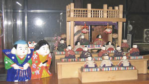 いま「中馬のおひなさん」というイベントがわが町で開催中です。当然、私の勤務先も参加してまして、上のお雛さんをウチから貸し出し展示中です。大正元年のものでウチのおじいさんのお兄さんが生まれた時のものだとか。おばあさんの話では、昔は男の子でもお雛さんを飾ったそうです。下のもウチから貸し出し中の木目込み人形のお雛さんです。これは私の主人のお姉さんが生まれた時のものだそうで、昭和23年のものです。当時は終戦直後で大きな段飾りは買うことができず、こういった形のものになったそうです。でも味わいがあってかわいいですよね。どちらのお雛さんも、蔵の中で眠っていたものなのでこうやって大勢の人に見られたり写真にとられたりして喜んでいることでしょう。あ・・・、でも娘のお雛さんは最近出してあげてないんですよね毎年この期間中はメチャクチャ忙しくて・・・(∩_∩;)今年も出せそうに無いんです・・・。
