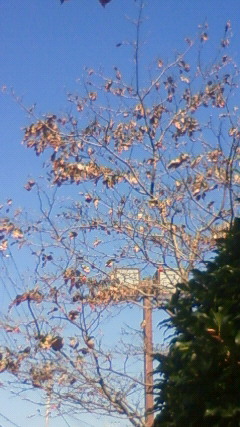 6時を過ぎても、まだ、運送やさんが集荷に来ないので、待っている間に、あちらこちらお邪魔していたのですが、そうだ!今日撮った写真をアップしちゃおう!!と思い、自分の日記を書き始めました。今日はとても良いお天気でした。仕事場へ自転車で向かう、いつもの通勤がなんだかサイクリングみたい。。。は言い過ぎですけど、ひょいと脇見をして空を見上げたら、空の色があんまりきれいだったので携帯を取り出し、カシャ。左側の高い方の木にはかわいい赤い実がなっているのですよ。しばらく前から気づいてはいたのですが、今日の青空に映えてとてもきれいに見えたので一緒に写しこんでみたのですが、写りませんでした。ちょっと意地になって場所を変え、角度を変えて撮ってみました。何回かトライして、何枚も撮ったのですが、残念、これが精一杯でした。実の色なんか赤に見えないし、やっぱりケイタイのカメラでは無理なようです。悔し紛れにこんなのもカシャっ。秋の七草と言いたいところですが、またまた残念、ブタクサです。と思ったら、失礼しました、セイタカアワダチソウでした。昨日、似たようなことがあって、shin1tさんに違いますよってコメントしたわたしが、今日はやってしまいました。ブタクサと信じ切っていましたが、調べると全然違いました。明日か明後日、まとめてアップしたいと思います。失礼しました。時々お邪魔するブロガーさん「ふろう人」さんがこの前、デジカメが安かったので、衝動買した!とアップしてらっしゃいましたが、わたしも安いの見つけて、買いたいです。公開するをポチッとしたら、運送屋さんのお兄ちゃんが来たので今日はこれでお家に帰ります。