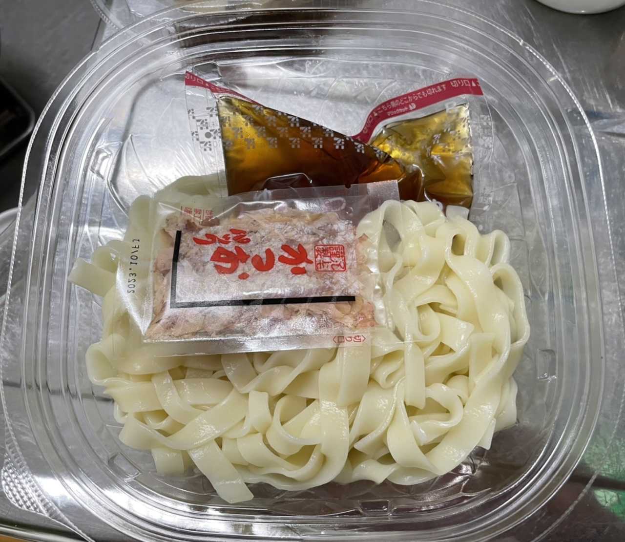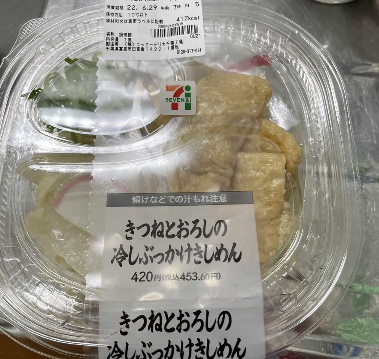 なんの変哲もないぶっかけきしめんなんですが、これがなかなか美味しくて、初めて買ったその日にすっかり気に入り、三日続けてお昼がこれ。息子に散々笑われました。