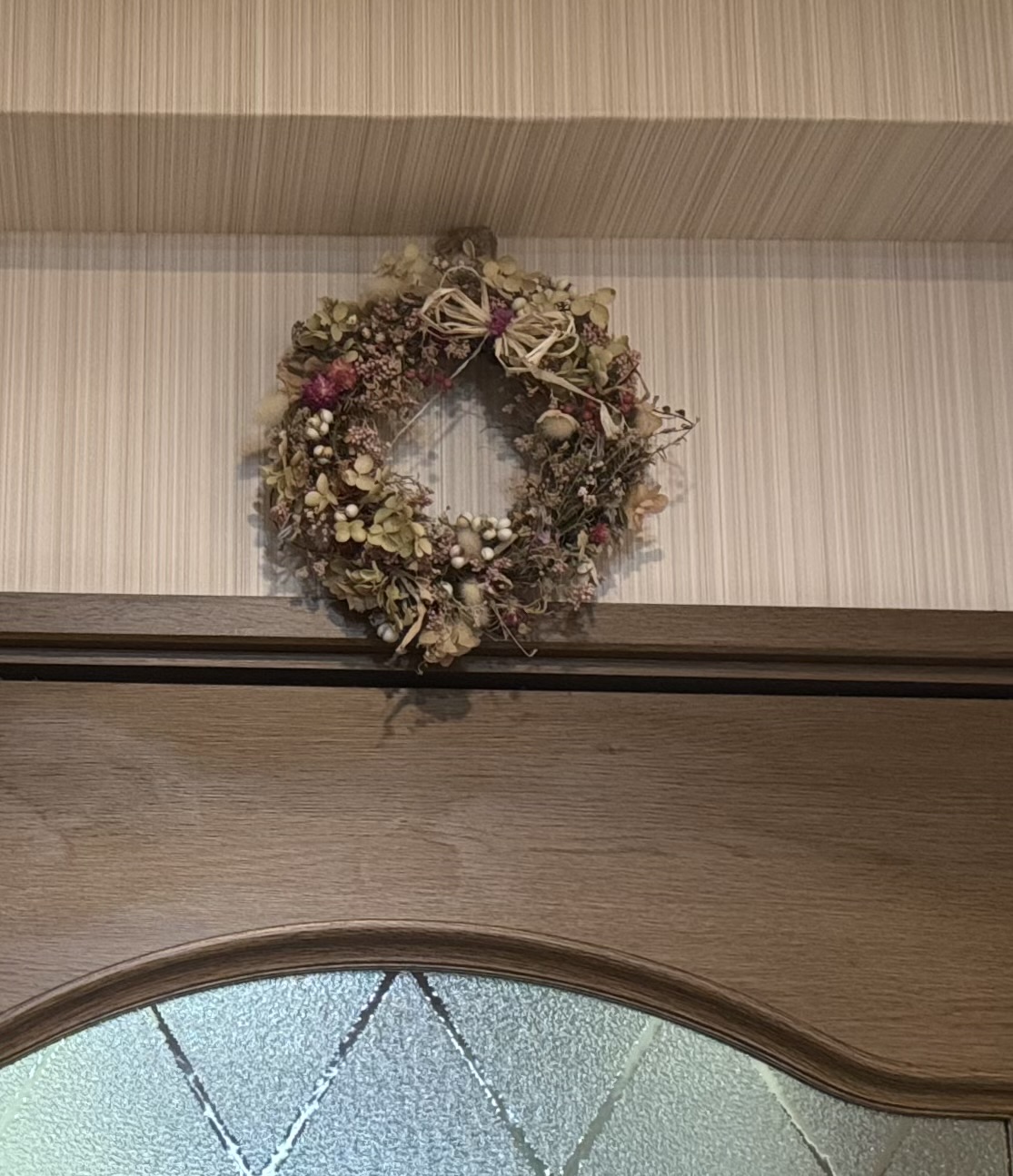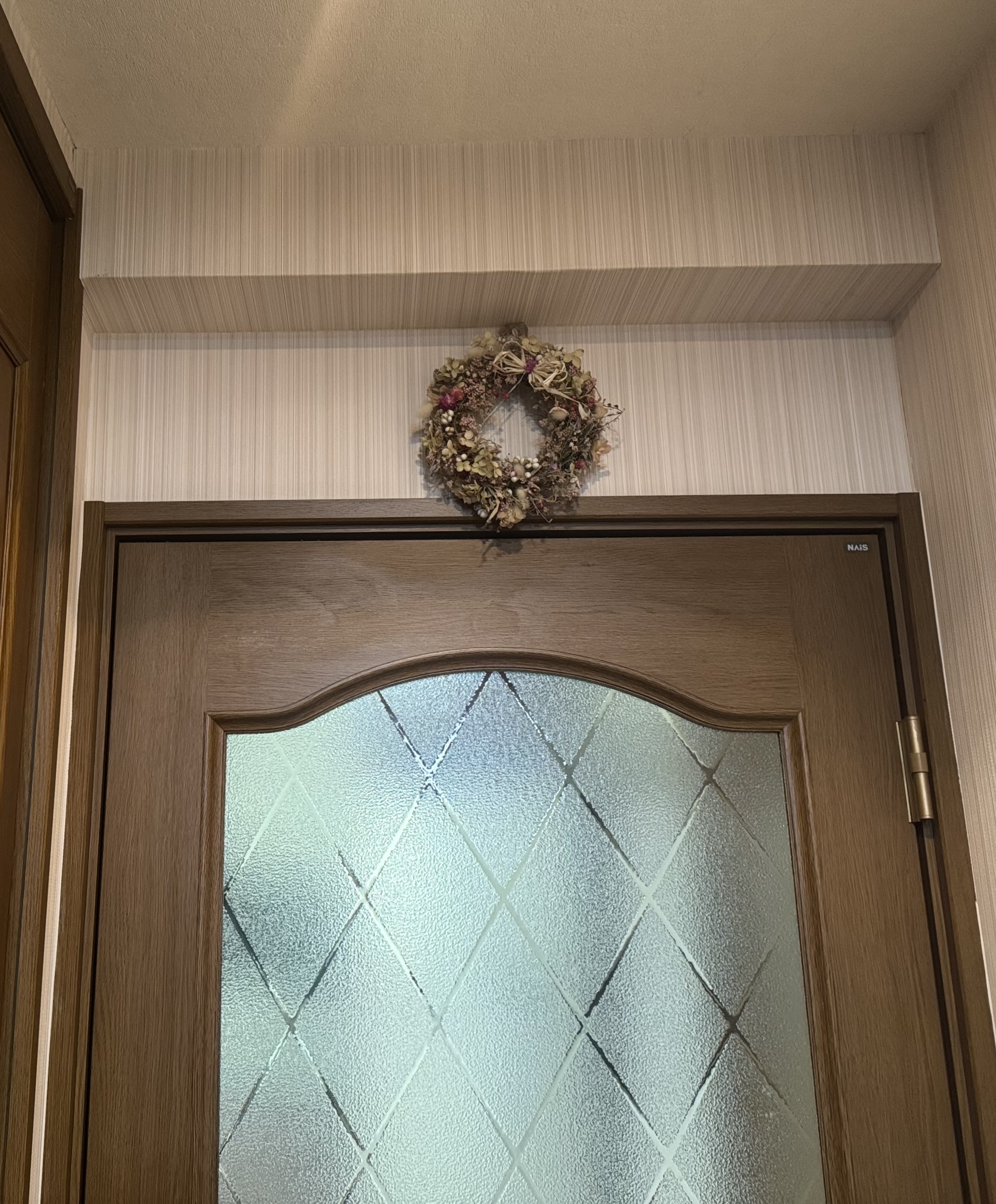 この場所、キッチンに入るドアの上の壁です。