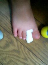 昨日、楽しい旅行から無事帰ってきて、家に着いた途端、ミュウが「あしが痛い」と言い出したの。見たら、右足の人差し指の裏にトゲが刺さってる裸足にサンダルを履かせていたから、どこかで刺さってしまったみたい旦那が毛抜きで抜こうとしたんだけど、怖がって大人しくやらせてくれなくてトゲが半分、中に残ってしまいましたもう6時過ぎていて、病院も時間外だったんだけど、旦那がすぐに行ったほうが良いと言うので、電話してみたら、診てくれるとのこと。すぐに旦那が自転車を飛ばして、ミュウを外科に連れて行ってくれました私は明日でも平気かな?って思ったんだけど、先生に診てもらったら結構深く刺さっていて、化膿してしまったりすると大変なので早めに来てもらって良かった、とのこと。旦那が馬乗りになって、先生が抜いたから、ミュウ大泣きだったみたい。でも大したことなくて、良かった旦那が休みの時で、しかもすぐに対処してくれたので助かりました。旦那に感謝ちょっと痛々しいけど、ミュウは元気に帰ってきました