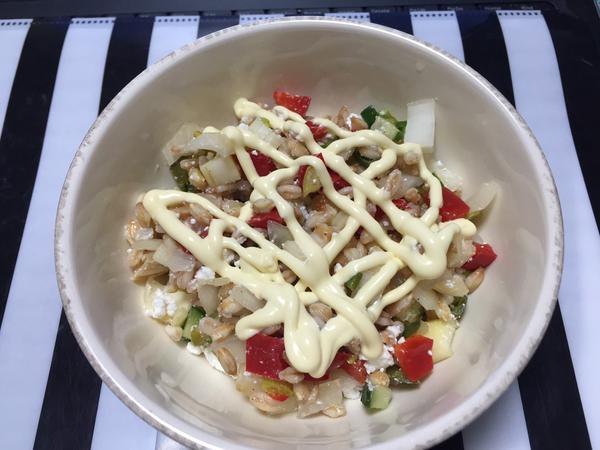【スペルト小麦のサラダ】鍋にスペルト小麦1袋がつかるくらいのお湯にブイヨンを入れて15分ゆで火を止めて、さいの目切りの玉ねぎ、パプリカ、ピーマンを追加する。バルサミコまたはウィンビネガー、オリーブオイル、ハーブソルトで味付けさいの目切りのきゅうり、セロリ、ダイスカットチーズとカッテージチーズを追加。好みでマヨネーズを添える。 有機栽培 ファッロペルラート(スペルト小麦) 250g【ブルグル小麦のサラダ】鍋にスペルト小麦1袋がつかるくらいのお湯にブイヨンを入れて15分ゆで火を止めて、さいの目切りの玉ねぎ、パプリカ、ピーマンを追加する。レモン汁、オリーブオイル、ハーブソルトで味付け。すりごまと炒ったクミンシードを入れる。さいの目切りのパセリ、きゅうり、セロリ、ダイスカットチーズを追加。好みでマヨネーズを添える。トルコ産挽き割り小麦ピラフ用丸粒ブルグルバシュバシュブルグル(BASBASI BULGUR)1kg★10P13Dec14