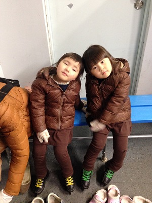 前回のスケート初滑りが相当楽しかったらしく→☆何度も娘たちにせがまれ、また連れてってあげることにしました。明治神宮外苑アイススケート場覚え書きですが、貸スケート靴はプラス1cmを薦められ前回子供たちは2人とも18cmを履きましたが、今回は次女が17cm 長女が17.5cmでフィットしました。ママは23.5cmでをチョイス。 今日は靴の履き替えがささっと出来るようにブーツはやめて、子供たちはクロックスのマンモス。ママはモコモコのウェッジヒールを履いてきました。 【アウトレット商品】 送料無料☆ キッズマンモス の後継モデル【アウトレット商品】 送料無料 ...価格:999円(税込、送料込) 送料無料☆ モコモコインナーで冬仕様♪ 送料無料 クロックス(CROCS) クロックバンド マンモス...価格:1,480円(税込、送料込) リュクスな可愛さを放つ中敷きファーウェッジパンプス★【アウトレット品・返品不可】【即納】...価格:1,890円(税込、送料別) 15:00前くらいから終了時間の18:00まで、3時間がっつり滑りました。終了の音楽が流れても 「もっと滑りたい」と骨太な事を言ってました今日の成果は2人とも 親と手を繋がずに、とことこ歩く感じで転ばずに1周まわれたりしました。 15:00以降は利用料が安くなることもあり、大勢で混み合いましたが、終了して人がはけたのでリンクの前でパチり また 来ようね にほんブログ村