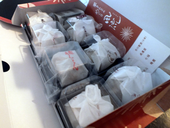 今日は昨日買った「栗粉餅」を配る日です。朝から幼稚園振替え休日の息子といろいろお出かけです。昨日は遅くなったので予定がかなり狂ってしまいました。オットのお世話になっているお客様にもお渡しすることができて良かったです。なんて言っても賞味期限が短いですから。今日は息子の幼稚園ママ達と一緒に遊びました(男の子ばかりです)。せっかくだから外でと考えていたのですが、台風が近づいているので急きょお友達のお宅にお邪魔しました。皆下の子ばかりなので、「なんだかこういう集まり新鮮ね」と盛り上がりました。子ども達は男の子同志仲良く元気に遊ぶことができ、見ていてすっごく楽しいひと時でした。私たちはおしゃべりに夢中!どうしても上の子中心に毎日が過ぎていくので、貴重な時間でした。もう11月の行事の振り替え休日の予定も決めてまた遊びます。楽しみ!!今日は昨日購入した栗粉餅以外の栗のお菓子のお話これは、JR中津川駅のにぎわい特産館の「くりきんとんめぐり 風流」です。いろいろなお店のくりきんとんと中津川名産のお茶がセットになっています。2種類あります。人気商品でお友達はたくさん頼まれたようなので、一緒に予約してくれました。人気商品なので夕方には売り切れてしまうことが多いです。私もお友達用含め3箱購入しましたよ!テレビでこの商品は「川上屋」が声掛けをして商品化されたと知りました。一昨年くらいからこれはあったと思いますが、「すや」が入っていない理由に納得した私です。くりきんとん王様の川上屋が声掛けをしないと実現しなかったでしょうね。くりのお菓子と言えば、やっぱりくりきんとんでしょうね。名古屋では以前から川上屋はデパートに入っているので、よく食べていますが、東京や大阪ではくりきんとんがまだまだ珍しく秋の催事などでは行列しないと買えないようです。子ども達もくりきんとんの方が好きですね。私は栗粉餅の方がだんぜん好きですが。あと栗のおこげも購入しました。うすいおせんべいになっていてパリパリの食感です。栗きんとんを薄くのばして焼いたものです。先日はにぎわい特産館で売り切れだったので、澤田屋(昨日のブログにのっています)で購入しました。あと恵那福堂(昨日のブログにのっています)では、サービスでいただきました。お店によってネーミングはいろいろです。さらに今年はじめて気になっていた「栗大福」も食べました。大福の中に栗きんとんが入っているものです。どのお店にもあるわけでなく、珍しいと思います。お店の名前は書きませんが、大福のお餅が求肥なので私としては不服でした最後に数年前からの新商品の干し柿の中に栗きんとんが入っているお菓子はオット用に購入しました。私は干し柿あまり好きではないし、一緒になると栗の味が負けてしまうのでどうかと思います。オットは干し柿が大好物なので、このお菓子も大好きです。これもネーミングはお店によってまちまちですね。くりきんとんより販売期間も長いので、手に入りやすいかも。栗のお菓子のことだと止まらない・・・・・18歳から栗粉餅を毎年食べ歩いている私です。オタク度かなり高いです