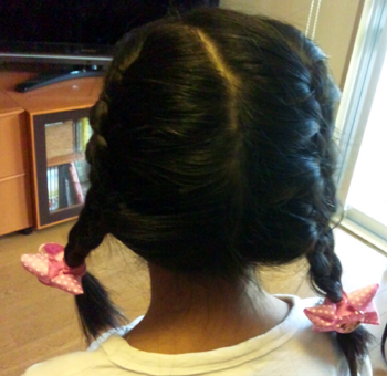 今日は出張美容師さんに来てもらいました。私も子ども達もカットしてもらってスッキリです!今日は、娘の編み込みを教えてもらいました。私はホントに不器用で自分の髪は触れないため、ずっとショートカットです。最近娘の髪が伸びてきて、要求も難しく困っていました向かって左は美容師さん右は私です。横で付きっきりで教えてもらってもなかなかできません。あとは練習あるのみですね。ただ、朝はバタバタでちょっと難しいかも。