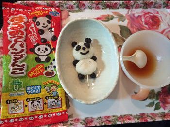 この駄菓子は、何かで頂いたお菓子詰め合わせに入っていたものです。粉を水で溶いてお団子にして甘醤油のたれにつけて食べるというもの。見ていて私はとても食べる気にはなれませんでしたが、米粉のお団子の味でした。息子はパクパク食べていました。