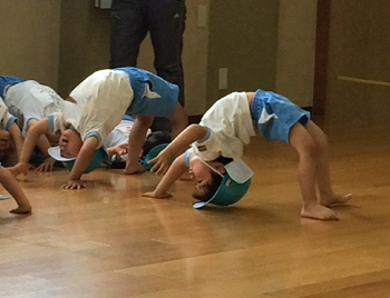 息子の年少組初の公開保育を見学に行きました。今日から3日間が公開保育ですが、ママ友と相談の結果火曜日に決定!子ども達を見に行くというより、ランチはどこにする?の相談のほうが熱心だったかも分刻みのスケジュールでとにかくすることが盛りだくさんな幼稚園です。体操では、ブリッジ歩きをしている息子をはじめてみてびっくり!うちでは全くしないので、出来るようになったんだ・・・と成長を実感しました。右隣りの子はお友達ですが、手が浮いていてしっかりできています。年長になったら全員逆立ち歩きするようになるので、これからが楽しみです。ちなみに午前中のスケジュールは朝の会本読みピアニカ書き方「息子はひらがなの の を練習」体操外でマラソン(1曲フルコーラスの間とにかく走る)マラソンは帰る直前にもあり、1日2回走ります。午後は外遊びとマラソンでした。本読みは平仮名が全部覚えるまではフラッシュカードで別に練習します。ピアニカや書き方も個人によって進み方が全く違うので、自分でチャレンジする子はどんどん進んでいきます。雨の日などはマラソンがないので、身体の疲れ方が全く違います。夜もずっと起きているから困っちゃうくらい年少から幼稚園に入った子だと毎日幼稚園だけでクタクタのようです。14:30で公開保育は終了。私は寝不足の上、ずっと立ちっぱなしで疲労困憊した1日でした。元気な子ども達を見てパワーを貰ったような気がします。