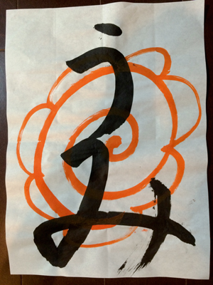 水曜日は親子別の時間帯ですが、お習字の日です。娘は毎週10枚の毛筆と硬筆をしています。両方で1時間くらいのお稽古です。今日は娘の作品「うみ」です。先生は、娘は毛筆が上手ですね!とおっしゃいます。娘は「毛筆は面倒なので、硬筆が大好き!」と言っています。私も子どもの頃習字をやっていた時、2枚重ねていっぺんに書いたりしていました。そうすると先生に「これは元気があってすごくいい」と展覧会に出しなさいと言われて、恥ずかしいやら、嬉しいやら・・・の思い出があります。