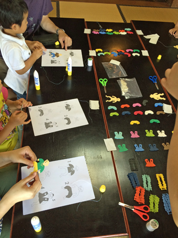 娘はJOFのデイキャンプの日でした。子ども達を見送ってから6人のママ友とお茶タイムです。午後は仕事が早く終わったオットと息子と珍しく3人で出かけました。北名古屋市の平田寺で、第7回まいまい狂言会関連イベントの「狂言絵本読み聞かせ&狂言モビールを作ろう!!」に参加しました。ほぼ1年ぶりの平田寺でしたが、いい風が吹き、とてもゆったりした空間の素敵なお寺です。長谷川さんご夫婦の人柄がにじみ出ていますね。オットと息子は「山伏」のモビールパーツを作成しました。私はママ達とおしゃべりをして楽しく過ごしました。私の目的は7月19日(土)のまいまい狂言会やその他もろもろしゃべりにきたことなので、目的達成です!今年もまいまい狂言会受付をお手伝いします、久しぶりに会う方もたくさんいると思うので、それも楽しみだわ。狂言絵本を読むオットと息子手にしっかり自分でつくった「山伏」を持っています夕方は娘を3人で車で迎えに行き、家族そろって久々に日曜日らしい休日になりました。