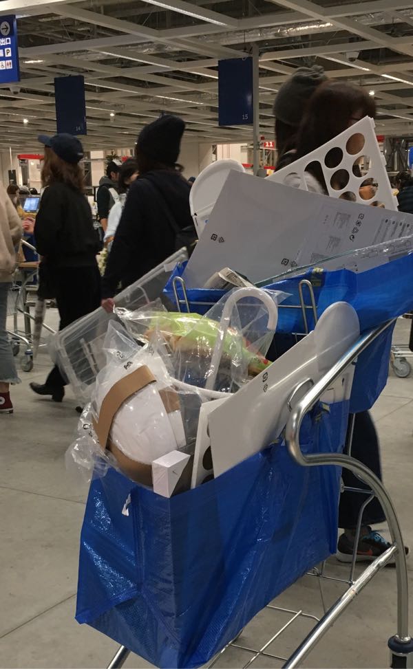お友達と先月オープンしたIKEA長久手に行ってきました。8時過ぎにはウチを出て、小学校へ。教頭先生と打ち合わせ、PTA壁新聞で必要な校舎の写真撮影、娘の忘れ物(体操服)を渡しました。9時半ちょっと前にIKEA長久手に到着。駐車場は1階に止められました。雨だったからかな?10時に着いたお友達は駐車場4階です。9:30からショールームとレストランはオープンしているので、ショールームに入れました。駐車場の係員さんに帰りに傘が必要なのでお持ちください。と言われましたが、結局必要なかったです。お友達とおしゃべりしながら、買い物をしました。私は小物を色々購入しました。手前の袋が私😊 プラス食料品をSの袋に山盛りです。意外に焼きたてパンがすごく美味しかったです。スモークサーモンやサーモンなどはお値打ち。楽しい1日になりました。大人の休日という感じ😊