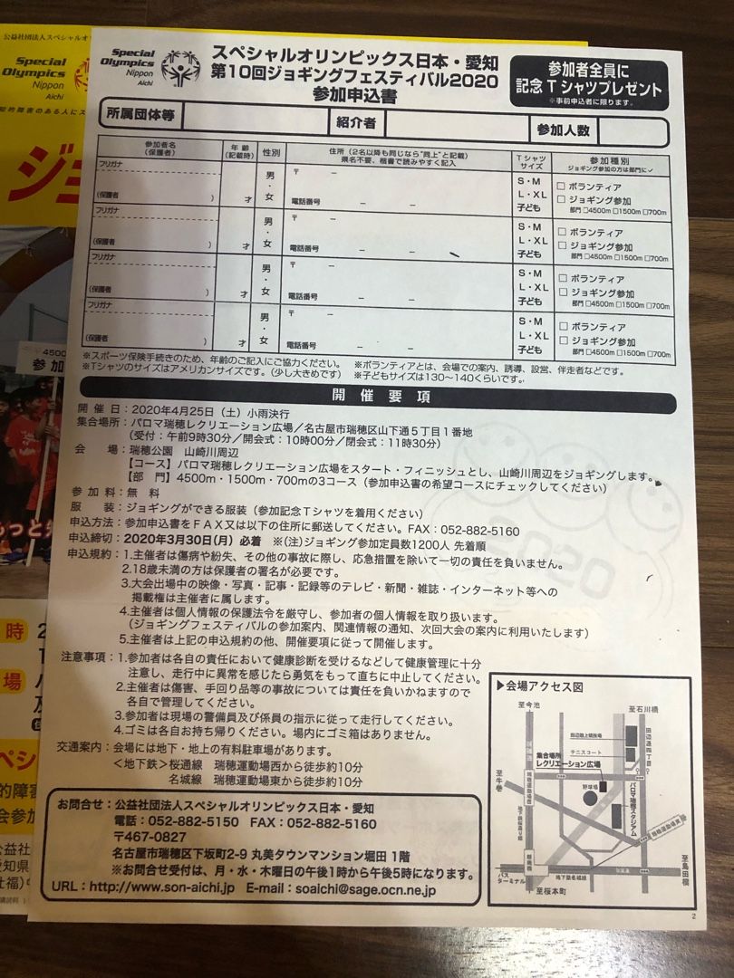 さて、毎年家族で参加しているジョギングフェスティバルに申し込みしました。