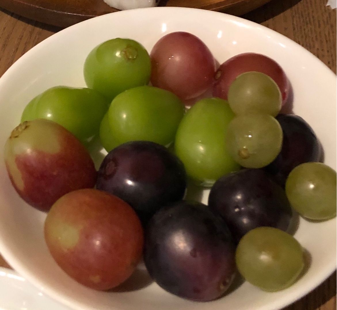 今日のメイン??シャインマスカットや巨峰などもたっぷりありましたよ ナイアガラも好き!(右縁のみどりのブドウ)