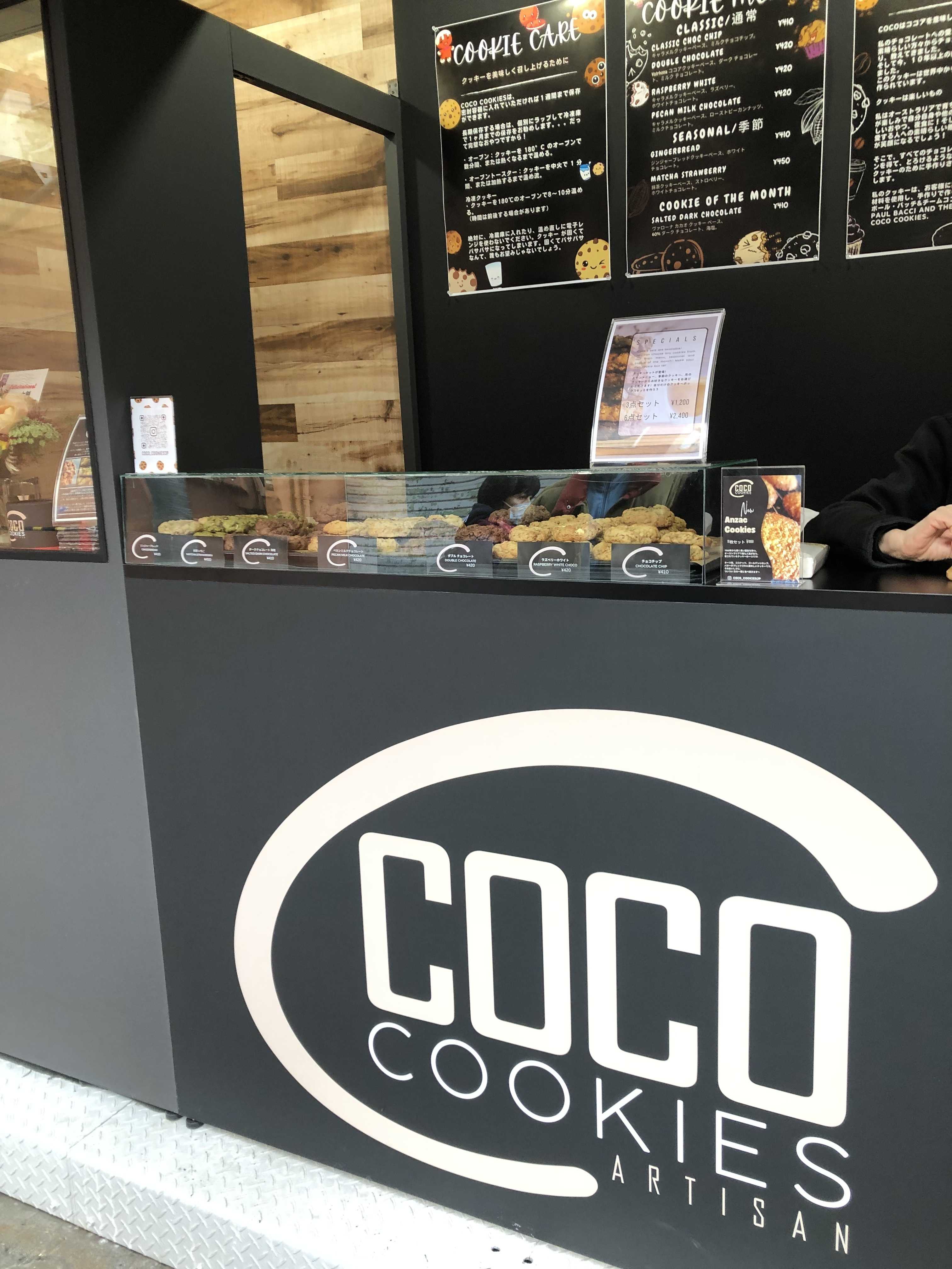 CO CO COOKIES です。焼きたてのクッキーが並んでいます。