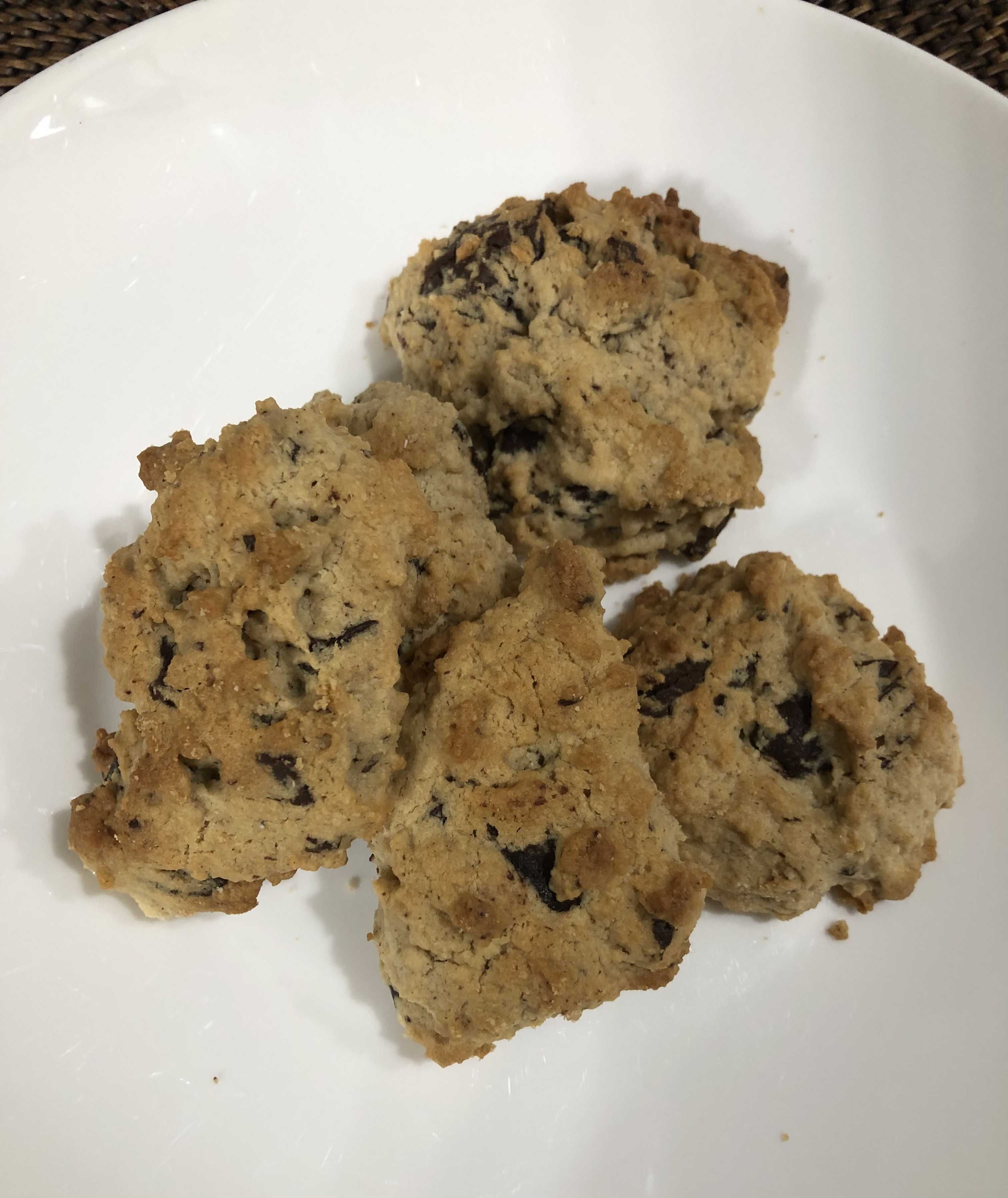 夫を職場に送り、娘とお昼ごはんを食べた後、チョコレートのお菓子が食べたいと娘のリクエストでチョコレートクッキーを作りました。