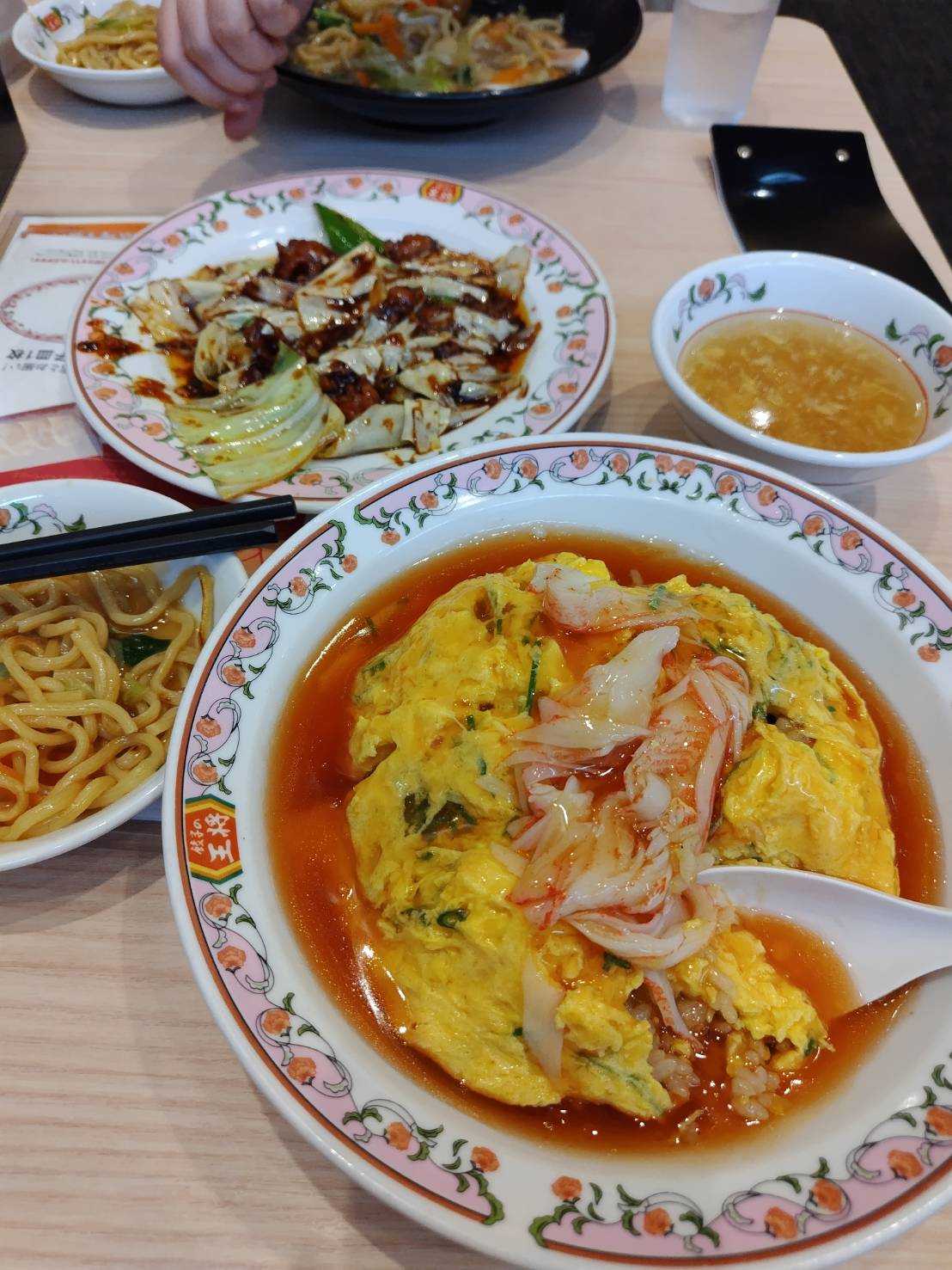 憧れの餃子の王将にはじめて家族が連れてってくれました。安さ重視なので、一品香や浜木綿のほうがおいしかったです。家族は天津甘酢炒飯を、私は海鮮焼きそばを食べましたが飯類麺類は量が多く、酢豚と回鍋肉も頼んでいたため、おなかいっぱいになりました。取り皿は、衛生面を重視しているのか、店員さんにくれといわないと貰えません。ご馳走様でした。次回はジャストサイズにして餃子とか春巻きを堪能します。となりのお客さんの石油洗剤と石油柔軟剤で洗った洋服と、石油シャンプーで洗った髪が臭すぎたので家族と席を交換して早食いして即帰りました。次回はカウンターで食べます。帰りは三和で卵を買おうとしたのですが、初めての店で卵の場所がわからず、ほかの食材を買って帰りました。みなさま、よい週末と、すてきな連休をお楽しみください