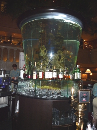 さ~て、晩飯も済んで、オプションは、『42階の焼酎バー』か『カラオケ』(-。-*)o『焼酎バー』は、『野郎』ばっかりだろうし。。。『カラオケ』には、先ほどの彼女たちは、いるだろうけれど。。。どうも、両方、『その気』にならず。。。2つ前の記事のバーへ、ひとりで、ふら~~~っと (o^-')bカウンターの中央に、大きな水槽があって、と~~~っても、ステキでした (*^∇^*)相変わらず、写真のセンスなし。。。m(_ _)mそこで、カウンターの女の子のお勧め。。。カンパリベースのカクテルを。。。おいしい~~~~~~~!!おかわりしちゃいました(笑)いいの!! 食前酒でも!!(笑)そして、そのバーでは、生演奏が、入っていました。いや~~~!!やっぱり、英語の歌詞は、聴き取れないね~~(-。-*)oまあ、それでも、何とか、『一緒に写真を撮ってもいいかしら。。。』くらいは、通じるから。。。(^_-)-☆写真より、ずっと、『いい女』でしたよ d(^。^ d)グッあっ、結局、『焼酎バー』にも、強制連行されて。。。『カラオケ』にも、連行されました。。。(笑)【mani】は、ずっと、金髪のおねぇさんと、一緒に、いたかったのに~~~~!!