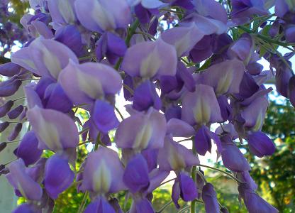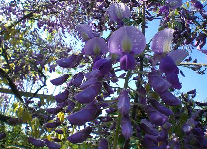昨日の雨が上がり、庭にはもやが立ち込めています。ぼおーっと霞む視界の先の紫色は、藤の花です。甘ったるい匂いが、あたりにふわふわと香ります。 昨日のテレビのニュースで、蜂が少なくなって、生態系に影響がある、と言ってましたが、うちの庭でも、藤の花が咲きだすと、ブンブンと怖いような音を立てながら、蜜を吸いにくるクマン蜂をまだ見ません。 五月の連休、満開の藤の花の下で、バーベキューをしたこともあるのに、ここ5、6年は、満開がどんどん早くなっている気がします。私の庭の小さな地球温暖化を見ています。