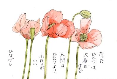 友達が訪ねてきて、賑やかに楽しく過ごしている夜、私は頭の片隅で、「S子さん、施設へ移る日だな」とチラッと思っていましたが、そのまま忘れていました。翌日も、ゆっくりの朝食をし、花咲き乱れる庭を褒めてもらい、得意げに説明し、その後、おにぎりを持って、山へ出かけ、芽吹きの美しい林を歩き、こんなに最高の天気はないね、幸せ!と何度言ったことでしょう。 夜、楽しかった二日間を振り返り、第二の故里と言ってくれる友達の顔を思い浮かべ、「絆」という言葉を考えているとき、電話がありました。S子さん(88才)から「引っ越しました」というご挨拶でした。ずっと眠れず、食欲もなく、涙が出て、まぶたがはれてしまった、と言います。亡くなった息子さんのお嫁さんと、その妹さんとで、軽トラックに最小限の荷物を積んでの引越しだったとか。最後に「お義母さん、私は決してあなたを捨てた訳ではありませんよ」とお嫁さんが言い、「はい、ありがとう。これからもよろしく」と表面は平穏に別れたそうですが、一人になって泣き明かした気持ちを考えると、私は他人、決してさしでがましい意見は言わないつもりですが、私くらいは、いっしょになって、そう分る分る、と言ってあげたい気持ちです。老後。これから私も行く道。切ないな。