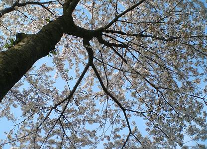 まったくもう、出かけてばかりで、いつ仕事してんだよ、と一人突っ込みをしながら、今日もお出かけです。お庭に大きな桜の木がある友人の家。月一回、トールペイントの集まりでお邪魔していますが、いつも、「桜のころ、花の下でお茶飲みましょう」と言ってくれていました。うちよりは、山に近いので、花の時期は少しずれて、今日が最高とか。 満開の桜は、立ち姿も美しく、今33才の息子さんの小学校入学記念樹ということですが、一族を楽しませ、他人の私たちをも楽しませてくれています。そよそよと快い風が吹き、ひらりひらりと花びらが舞い落ち、その下でお茶。うどの煮物や、お漬物や、イチゴや、おばあちゃん手作りの大きな草餅や。 樹の下は、すっぽりと神の手に覆われているような安心感があり、あまりに気持ちよくて、眠ってしまいたいくらい。願わくば花の下にて春死なん、と西行法師の歌が浮かびました。