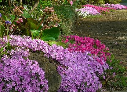 近所の方が家を建て替えられました。樹木は、保管しておいて新しい庭に植え替えられましたが、お花がありません。あまりに寂しいので、芝桜を少しもらえないかしら、と奥さんが見えました。どうぞどうぞと、スコップですくって一列をざっーと差し上げました。この写真は、玄関から駐車場横にかけての芝桜ですが、庭の縁取りにあちこちに植えてあるので、少々削っても何の支障もありません。ご主人が畑をやっておられて、いつもお野菜や苗を頂いていますが、私には、なかなかお返えしするものがありません。お花でお返しできるなら、といっぱい咲き始めた十二単や、都忘れや、アッツ桜など、増えるものを見繕って、差し上げました。 奥さんに、はっさく一袋、ご主人にネギ苗をいっぱい頂きました。二本ずつ植えなさい、と言われた通りに、ネギ苗を植えながら、私はただの物をあげたのに、わらしべ長者だわ、と思いました。