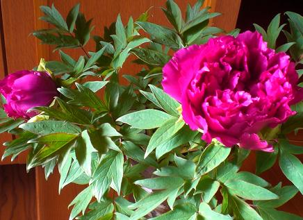 朝、庭に咲いた芍薬を切花にして持って来てくれた人がいました。玄関にはもう花が活けてあったので、花瓶を床に置いて飾ってみました。つづいて、ゴミ出しに来たついでに寄った、と軽トラックが入ってきました。名前は分らないけれど、とても増えて可愛いいよ、という花を二種もらいました。 今日は、藤の花を見る、という名目にかこつけて、毎年の恒例なのですが、十二時から6人で持ち寄りのお食事会をします。テーブルの上に並びきらないほどの料理を、ゆっくりたべようね、とおしゃべりしたり、笑ったり、次の計画を話したりとしながら、殆んど平らげました。三時に解散した直後、いつも来るOさんがやってきました。珍しい紅茶を持ってきてくれたので、それを淹れ、みんなが持って来てくれて、冷凍しておけばいいよ、と言われた大福餅や、花豆の煮物を、また食べました。紅茶に合わないね、と笑いながら。なんでもありです。 夜、裏山で採れたタケノコを朝のうちにすぐに茹でた、と持って来てくれた人がいます。仕事のお客さんは来なかったけれど、今日は本当に千客万来の日でした。 、