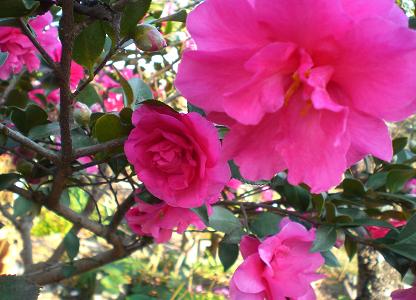 山茶花の花が、狂ったように咲いて、木を覆っています。 暖かで、気持ちのよい風がそっと吹き、鳥があちこちで鳴いています。庭にいたら、Mさんが訪ねてきてくれました。私よりも、うんと若い人です。きっとリハビリの途中休憩で寄ったのでしょう。 家の中へどうぞ、と言ったら、まだコルセットをしていて、靴を脱ぐと、また履くのが大変なので・・・、と言うので、庭のテーブルで、お茶しながら、入院中の話を聞かせてもらいました。 脊髄に腫瘍が出来て、それが髄液の流れを圧迫して、激痛に苦しんでいました。痛みが腹部にあらわれていたので、まさか背中の方だとは気付かず、なかなか原因が分からなくて、やっと行き着いた脊椎の専門病院に入院していたのです。すごい不安の中、お医者さまの言った 「歩いて入ってきた患者が、車椅子で出ていった例は、今までに一件もありません」 の言葉に救われたとか。 山中にある病院なので、目覚めたとき、窓の外はまっ白な霧で、何も見えず、あの世かな、と思った、と言い、今となっては笑い話で良かったな。入院中は、とても歩ける気がしなかったけれど、こうして人の家を訪問できるようになり、幸せだと言います。人に批判されるところもある人なのですが、少し変わったかな、と感じました。病気になって、教えられることもあるんですね。ホントに、ホントに、健康は有り難いな。