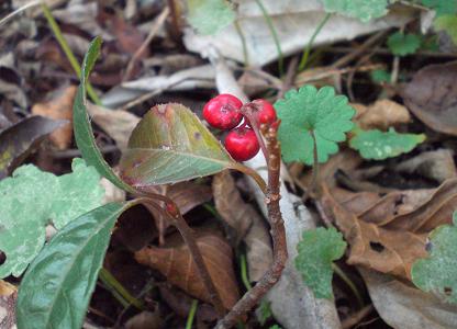 「やぶこうじ」 と言います。 薮柑子、こんな字かな。ロウバイとウメモドキの木の下で、落ち葉に埋もれ、地下茎で広がっています。 丈は10センチくらい、目立たないので、思い出して、覗きに行かないと、普段は忘れてしまいます。 あった、あった、という感じです。同じような実をつけるものに、万両、千両、百両、とありますが、これは一番丈が低く、十両とも呼ばれています。名前の付け方は、面白いなあ。 一日中、雨に降り込められた昨日、関西の友人からの手紙がポストに。半世紀も前の高校時代を、いっしょに過ごした友人です。糖尿病で、目も不自由になっておられたお姉さんが、三ヶ月前に亡くなったとか。母親代わりの姉だったので、とても悲しく寂しい、とも。手紙の中にも雨が降っていました。 私も4人姉妹。みんなバラバラの場所に住んでいるので、全員で会えるのはなかなかなのですが、それでも今はみんな元気です。でも、いつかこんな日が来ると思うと、ぞ~っとします。寂しい気持ち、とてもよく分かるよ。 うん、寂しいね~。 また、会える日を楽しみにしています、と結んでありまた。今年は5月に会いました。また、来年、会えたらいいね!