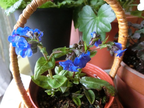 廊下温室のプルモナリア。一足も二足も早い開花状態です。なんて素敵な色彩でしょうか。天然の青は素晴らしいです。何かと似ていると思いませんか。そう、勿忘草にそっくりです。花は一回りこちらの方が大きいですが。ワスレナグサとプルモナリアは、同じムラサキ科。親戚なんですね。花が咲いているのは、廊下温室だから。耐寒性に非常に優れているとはいえ、外のプルモナリアの状態は、こんな感じです。レンガに囲まれてはいますが、地植えです。でもね、カメラを近づけてみましょう。ほら、花芽がしっかりと幾つも芽を出していますよ。もうそこに春が来ていて、まもなく勿忘草と一緒に地面を青く染めるでしょう。昨日、Y医院では、点滴を受けながら「ラストスパートだよ」と言われました。そして今日、血液検査の結果がほぼ良好で、それは今日の点滴の結果は入っていないので、完治と言えるでしょう、とやっと無罪放免となりました。二週間続いた点滴でした。皆さまにも、ご心配をかけて、本当にありがとうございました。感謝です。Y先生とご一緒に、S子さんの施設へ通い始めて6年。毎月一回の訪問を、一度も欠かしたことがありません。それは、Y先生も、S子さんも、私も、3人がその間、それぞれ健康であったのだ、とつくづく思います。Y先生から電話があって、今月のご都合は如何と聞いてこられました。無理すれば、もちろん出かけられるのですが、90才台の方を車に乗せて、90才台の方のところへ行くのですから、それなりの注意と、気を使います。無理するのはやめよう、と判断して、事情を話して、寒い時期でもあるし、今月は休みたい旨を伝えました。疲れがたまっていたのよ、気をつけてね、と何度も言ってくれます。三月は早めに行きましょう、と決まりました。夜、今月は伺えません、ということをS子さんに電話しました。がっかりしている様子がよく分かりますが、たまには許してくださいね。S子さんにも、体に気をつけてね、と何度も言われます。ウフフ、94才と93才、お二人に、励まされてしまいました。お二人とも風邪もひかず、とっても元気とのこと。脱帽です。花ブログランキングに参加しています応援のクリックをよろしくお願いします。