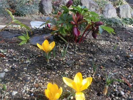 クリスマスローズの勢いが増してきましたね~どんな背景にも、どんな植物ともよく似合う花だと思います。黄色のクロッカスとクリスマスローズ。反対側から見たらこんな感じ。クロッカスが覗いていて可愛いです。オオニソガラムのツンツンした葉っぱに囲まれて。エゴの木の下には、三株まとまって成長しています。これは明日には開花しそうです。靴の置物と一緒に。この子もまだこれからのようです。薔薇「カクテル」の木の下で、二十本くらいの花が立ち上がっています。マイ(高校二年生)が、学校で作ったお味噌を持って来てくれました。大豆から自分たちで仕込んで作ったお味噌です。みるからにおいしそうで、味噌汁以外に何か作ったら、ブログに載せるから見てね、と約束しました。味噌焼きおにぎりを食べたいな、と味噌に味醂を混ぜて、おにぎりに塗り、トースターで焼いてみました。カキナのお浸し、玉子焼き、赤魚の煮つけ。ほんとうは、焼きおにぎり二個作ったけれど、食べれませんでした~。濃いお茶といっしょに、とっても美味しい一人ランチでした。土曜日は、娘たちが予約してくれたお店で外食でした。お正月以来、アルコールを飲んでいなかったので、一杯の水割りで酔いました。ビール、ウイスキー、日本酒、焼酎、ワイン、なんでもござれの私なのに、弱くなっちゃった、とつくづく思いました。でも、これでちょうどいいのかもしれませんね。花ブログランキングに参加しています応援のクリックをよろしくお願いします。