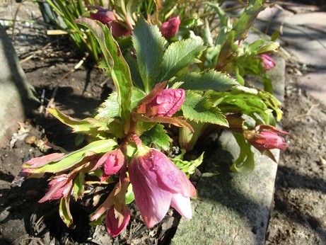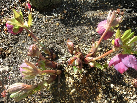 二月、いよいよクリスマスローズ本番の季節になりましたね。数えてみたら、13個の蕾が立ち上がって来ています。ちょっと失礼、とカメラを持った手だけを伸ばし、下から撮りました。これは別の場所です。今までは、しゃがみこんで、葉を掻き分けて、花芽を確認していましたが、こんなに赤色が濃いクリスマスローズだと、上から見ただけで、花の成長が分かり、ワクワクします。ここは、水仙の芽も続々と出ていて、お気に入りのワクワクコーナーです。福寿草も、黄色の花が覗いていますよ。ワクワク。スノードロップもツボミが膨らみ、すぐにも開きそう。ワクワク。二か所の施設で傾聴ボランティアをしていますが、昨日、そのうちの一か所から電話があって、感染症が発生しているので、外部からの訪問を禁止したとのこと。二月いっぱいは、お休みするということになりました。お電話くださったKさんにも、インフルエンザ気をつけてね、といいましたが、手洗い、うがいを実行して、皆さまもくれぐれもお気をつけて下さいね。花ブログランキングに参加しています応援のクリックをよろしくお願いします。