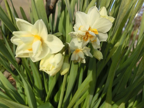 黄梅。別名は迎春花。うちの庭では、梅はまだツボミ。梅に先駆けて咲くのが黄梅です。木の根元の方までツボミが付いていて、これが全部開くと見事ですよ。 黄色の花びらの縁に、ちょっとオレンジ色が差していて、とても可愛いです。水仙ティタティタ。庭にいっぱいあるのに、花が待ちきれなくて、花の咲いた鉢植えを、買って植えたのが1月26日、ちょうど1ヶ月経ちました。まだまだ元気。昨日、雪桃さんが気づいて下さいましたが、ここのティタティタを半分堀りあげて、昨日の小道の右側に植えましたよ。庭植えのティタティタに、ついにほら、こんなにツボミが上がってきましたよ。株分けして増やしているので、あちこちに芽がでています。この一群れにも、ツボミがぎっしりと覗き始めています。株分けするときは、ここに咲くといいな、と考えて植えているのでしょうが、それをまったく覚えていないので、芽が出てから、こんなところに?とびっくりしたりしています。さっきお客さんから、三時に持って行きますので、と幼稚園入園に要るバッグ一式を頼まれました。そうだよね、毎年頼まれますが、もうそんな季節なんだなあ。ちょっと面倒でもあり、気分が変わって嬉しくもあり、半々です。 面倒、といえば、こんなに沢山のネクタイを持って来て、これで袋を、と頼まれました。イヤイヤ、これは手間が大変。それに私、センス無いから、色の組み合わせも難しいし、お安くいくらでもバッグが売っていますよ、買った方が、と逃げの一手です。どんな出来上りでも、文句は言わないということで、断り切れず引き受けてしまいました。花ブログランキングに参加しています応援のクリックをよろしくお願いします。