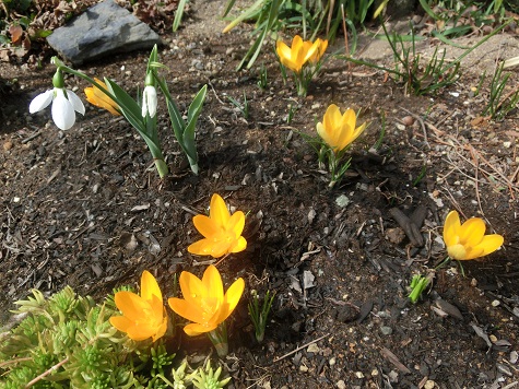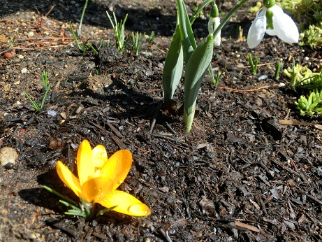今日は雨水。この言葉を聞くだけで、水ぬるむ春を感じます。そんな日にふさわしく、黄色のクロッカスが開花。一輪だけなんですが。昨日の雨に湿った黒々とした土との対比が美しいです。まわりにゾクゾクと芽を出しているクロッカスたち。次の開花はこの子かな。友達が、自分で種まきして育てたピンクのカスミソウを持って来てくれました。去年も頂いて、大株に育って綺麗でしたよ。三月までは、鉢のまま、軒下で育て、それから地植えにします。楽しみです。お天気も良いことだし、二人で大室公園へ梅を見に行きました。ピンクの梅は、早や満開を過ぎ、白梅が五分咲きくらい。青空をバックに、清楚な美しさでした。綺麗ね、綺麗ね、と何度口にしたことでしょう。神さまは、本当にいろいろな植物を作られたのだな、といつも思います。 花ブログランキングに参加しています応援のクリックをよろしくお願いします。