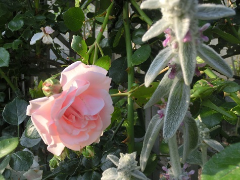 ラムズイヤーと薔薇ニュードン。ラムズイヤー、直訳すると「子羊の耳」。紫色の小さな花が咲きますが、ラムズイヤーは名前の通り、子羊の耳のような、ふわふわした触感の葉ッぱのほうが主役です。なぜ一枚目の写真を載せたかというと、植わっている場所を知って頂きたいから。ドンと重く動かすことのない青い椅子と、薔薇ニュードンとの隙間です。椅子の上から覗くとこんな感じに、繁殖しています。ラムズイヤーは、乾燥や寒さには大変強く、暑さや蒸れには弱いです。日当たりは好きだけれど、夏は日陰が好き、と地植えするには、ややこしい性格。こんなに繁茂してくると、蒸れてくるので、どんどん抜いてしまいます。この場所は狭いので、とても手入れしにくいです。去年、一部を鉢植えにしてみましたら、とってもすっきりといい感じに育ちました。地植えと鉢植えの両方を育ててみて、ラムズイヤーは、鉢植えの方が目が行き届いていいかな、とは私の感想です。ちょっと前のことですが、楽天ブログでは、Facebookとの連携設定が出来るようになり、自動投稿設定をしました。とはいえ、どこかお仲間に入っているわけではないので、勿論動きはありません。ところがつい最近、ひょんなことから参加させてもらえるお仲間ができました。それでお仲間のところへお邪魔したりしているうちに、あれ~っと気づいたことがあります。もしご意見があれば聞かせて頂きたいです。ブログを書き終えて「公開する」ボタンを押して、公開します。そのあと、誤字脱字に気づき訂正して、また「公開する」を押します。ブログの場合は、上書きされるので、何回訂正しても問題はありません。ところがFacebookを覗いてみて、びっくりしたのは、私の同じ記事が、二回も三回も、載っているのです。そのつど、ほとんど同じ文が、訂正の回数分投稿されてしまいます。これって、受け取る方は、迷惑なのではないかしら、と気になります。Facebookはその時々の投稿なので、当たり前なのかもしれませんね。誤字脱字に気をつけて、二回目を無しとしたとしても、私の場合は、ブログランキングに参加しているので、ランキングの方へping通信というのを行います。そのときも、公開する、を押します。これが一回ではなかなか行ってくれなくて、もう一度やったりします。それもFacebookにとっては、投稿と同じ意味にとられてしまいます。何回も私のブログを受け取って下さっている方、ごめんなさい。どうすればいいのか分かりません。 昨日のアクセス数 831 花ブログランキングに参加しています応援のクリックをよろしくお願いします。
