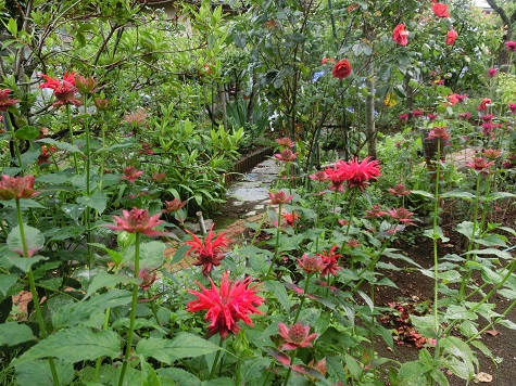 多年草のベルガモットです。地下茎が伸びて、とんでもないところに顔を出したりします。増えすぎるとほかの花が困るので、抜いています。ウワ~っと繁殖させるのではなく、風が通るような植え方に気をつけています。始めのころは、抜くことが可哀想で抵抗があったのですが、家の中の断捨離と同じで、今は抜く、切る、とすっきりさせることを美としています、な~んて、偉そうにごめんなさい。丈高く真っ直ぐに立ち上がる様子が、とても見栄えのする植物です。全部がそうではないのですが、花の中央から茎が伸びて、もう一つ花が咲きます。つまり二段になります。別名はタイマツ草ともいいます。どうでしょう、松明に見えますか。こちらは、赤いベルガモットです。こっちの色のほうが、好きかも。先日娘の家へ行ったとき、いつも行く雑貨屋さんに連れて行ってもらいました。正式に名前があるかどうか知りませんが、こんなものを買いました。私はドライフラワーを吊り下げたくて、探していたので、すぐに購入。ほんとうは、もう一回り大きいのを探していたのですが。ベルガモットを吊り下げてみました。ベルガモットをドライにするのは始めてなので、うまくいくかどうか。急に曇って来て、雨が降りそうです。家の中に取り込みましょう。 昨日のアクセス数 1005 花ブログランキングに参加しています応援のクリックをよろしくお願いします。