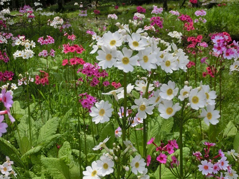 日光の中禅寺湖畔千手ケ浜へクリンソウを見に行きました。それはそれは澄みきった清冽な川のほとりに、群生地があるんですよ。四種類くらいの色のクリンソウが混じり合って咲き、夢のような美しさです。向こう岸にも一面に咲いています。水が大好きな植物なので、川のほとりに広がっています。種が落ちて、どんどん広がっていくんですって。非常に珍しいという黄色のクリンソウも見ることができました。深い森との景色が幻想的で、いつまでも見ていたい気がしました。この森を抜けた左側がすぐに中禅寺湖です。中禅寺湖と、ど~んと聳えている男体山。波が寄せては返し、海のようです。はるか向こうに遊覧船。 冷涼な気候があっているのでしょうか。川の傍ではない森の木の下にもクリンソウが広がっています。素晴らしいね~、と大満足でした。光徳牧場にも寄り道しましたよ。クリンソウを見に行こうということは、以前から決まっていたのですが、花の時期と、天候との兼ね合いが難しくて、今週中ということになっていました。日光市の週間天気予報を見ると、今週中はず~っと曇りと雨の予報。月曜日だけが晴れ今朝になって、空が綺麗に晴れているのを見て、「今日行っちゃおう!」帰り道、メンバーの携帯が鳴り、家族から、「こちらは突風、大雨、雷、雹が降った!大丈夫?」私たちの方は穏やかに晴れていたので、信じられないね~と言っていました。車が家に近づくにつれて、道路には水たまりがひどくて、降ったんだね~って。帰宅してみて、ニュースを見てびっくり、すぐ隣の町では大変な被害が出ていました。何も知らず、のんびり楽しんできて、何が起こるか分からないな、とまた思いました。 昨日のアクセス数 953 花ブログランキングに参加しています応援のクリックをよろしくお願いします。