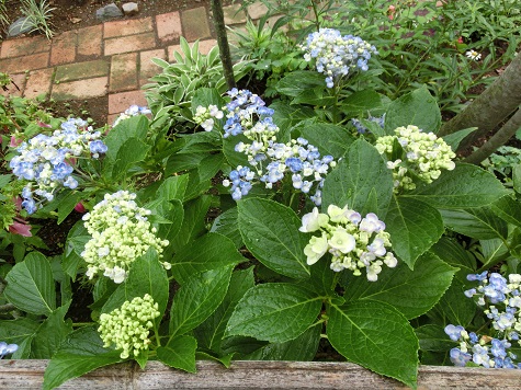 白い紫陽花が咲いている小道です。手前は、名無しの薔薇ですが、毎年長い期間を咲いてくれます。白い紫陽花。存在感がありますよ。ガクアジサイ。小道の写真でいうと、左側のずっと奥のほうに植わっています。くるりと丸まっている可愛いお多福紫陽花です。去年、友人から挿し木したのを頂いて、十分な大きさに育ちました。違う人からも、挿し木アナベルを頂いたのですが、それは花が付きませんでした。これは「隅田の花火」。これはピンクの紫陽花です。庭の隅のほうに植わっています。「母の日」に娘からもらった紫陽花「こんぺいとう」。ちょうど一ヶ月、室内で鑑賞していましたが、いよいよ花が終わりそうです。このまま鉢で育てるか、地植えにするか、迷いました。結果、冬アジサイを鉢で育てているので、これは地植えにすることに。敷地の端っこ、ブロック塀そばに植えました。うまくいけば、ここらあたりが明るくなっていいかも、と楽しみです。ここからは、私の勝手なおしゃべりなので、読み流してくださいね。ずっと海外旅行はいつも二人一緒だったMさんのこと。Mさんは今年はイギリスへ。イングリッシュガーデン行こうね、と言っていたのに、私はお断りしたので、彼女は一人でツアーに参加しました。その彼女から、メールがきました。「おはよーございます。昨日英国から帰ってきました。あっという間の一週間でした。イギリスはまだ寒いのと雨が多い国だから、傘とレインコートを忘れずにと言われ、長袖などを用意しました。着いたら案の定、雨と寒さの出迎えで、これは期待薄かな、と気持ちが沈みました。でも、翌日からはイギリスでは珍しくお天気に恵まれました。北部中部は牧場が多く、草原は緑いっぱいで、珍しい頭の黒い羊、そして親子そろってのんびりと、草を食む様子などを目に焼き付けてきました。良い意味での昔ながらの田舎の風景でした。世界遺産もところどころありましたが、わたしたち、イタリアやスペインを見てきたものね、それに比べると、いまひとつ迫力薄でした。期待していたイングリッシュガーデンと薔薇はちょっとがっかり。貴女が連れて行ってくれたジョイホンのガーデンの方がいいかも(笑)。ロンドンは半円形の建物と、窓の形を縦長に統一した様式は綺麗でした。どこの都会も同じで、特にロンドンは物価が高く、立派なマンションもなかなか庶民の手には負えず空き家が多いとか。生活するのは大変なところのようでした。ヨーロッパ大体見て回ったよね。貴女と見て回ったその国々が正解で、もう十分と思いました。昨日のフライトは大気が不安定で、ずいぶん揺れて怖かったわ。帰ってきたら、ポストに国内旅行の雑誌が入っていました。これからは国内旅行に行きましょう。私はいつでもOKなので、あなたが行けるとき、行きたい所へ。長々とごめんなさい。ではまたね。」ウフフ、彼女のメールを勝手に公開してゴメンなさい。彼女はパソコンしないから、私のブログも見てないから知られないかも。だってね、こんなに丁寧に生き生きと、旅行記書いてくれて、私への気遣いも忘れないで、なんて素敵な人、素敵な文、と思ったんですもの。 昨日のアクセス数 871 花ブログランキングに参加しています応援のクリックをよろしくお願いします。