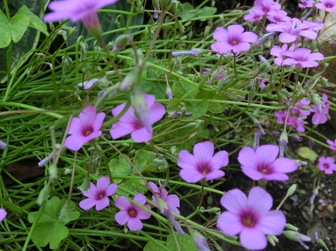 これは、昔からあるオキザリス。カタバミというほうがいいのでしょうか。カタバミの仲間で、三角オキザリス。葉の色が美しいです。このオキザリス「紫の舞」は、挿し木したアナベルを鉢で頂いたときに、根元にくっついてきたおまけなのです。ちょっと写真の写りが良くないですが、本当はもっと紫色に近いです。これもオキザリス。「アイアンクロス」です。面白いことに四つ葉です。花がまっすぐ長く立って咲くので、ところどころにあると風景が引き締まります。M子さんが畑からの帰り道、ナスとキュウリを届けてくれました。ありがとう! さっそく使わせてもらいます。そして、いっしょに車から、底に少し水の入ったバケツを下してきて見せます。な~に? と覗き込むと、小さな生き物が泳いでいます。透き通った小エビ、という感じ。豊年エビという生き物で、昔から田んぼにこれが出ると豊作、と言われているとか。小さなことにとっても感動するM子さんは、これが円を描くように、素早く動くと、キラッ、キラッと光って、美しくて見飽きない、と言います。「それでね、もうひとつ、こっちの生き物が何か分からないの。チマミさんなら、知っているかと思って」ですって。「とんでもない、豊年エビだって、初めて知って、初めて見たよ」二人で調べました。"田んぼの生き物"で検索すると、まず一番目に豊年エビ、二番目に出てくるのがこの「カブトエビ」という生き物でした。田んぼの雑草をエサとして、草取りエビ、と言われているそうです。すぐに判明してすっきり。小学生の宿題のテーマにでもなりそうな、田んぼの生き物の話でした。 昨日のアクセス数 824 花ブログランキングに参加しています応援のクリックをよろしくお願いします。 現在のランキング 5 位