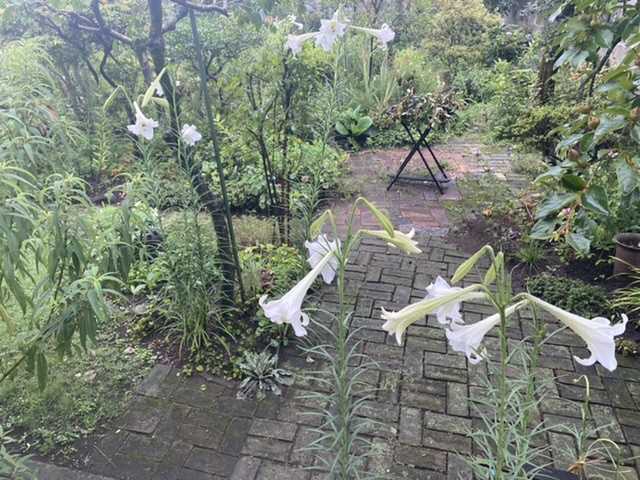 タカサゴユリが、庭中に散らばって咲いています。雑草、野の花。放任すると種が飛んで飛んで、限りなく増えます。庭に植えるものでは無い、と嫌う人もいますが、私は、大好きで、生えるにまかせています。朝日を浴びて、清らかで美しいなあ。今は、電気料金は、スマホで確認するようになりましたが、今月からは、認証番号を取ってから、になりました。Kさんから、新しいスマホに変えたら、どうしてもうまくいかなくて、料金が分からない、ちょっと見てほしいので、 お邪魔していいか、と電話がありました。電気料金確認のプロセスのちょっとした変更で、スマホのせいでは無いのですが、ちょっとした変化でも、私たちの年齢になると、右往左往してしまいます。というわけで、一段落した後、お茶にしました。昨日焼いたブルーベリーのパウンドケーキですが、ちょっと失敗してしまいました。ブルーベリーの加え方に、ひと工夫するのを、すっかり忘れていたので、ブルーベリーが、重さで沈み、底に固まってしまいました。ただし、たっぷり入っているので、味は美味しいです。 花ブログランキングに参加しています。 応援のクリックをよろしくお願いします。 昨日のアクセス数 3145 昨日のランキング順 5 位