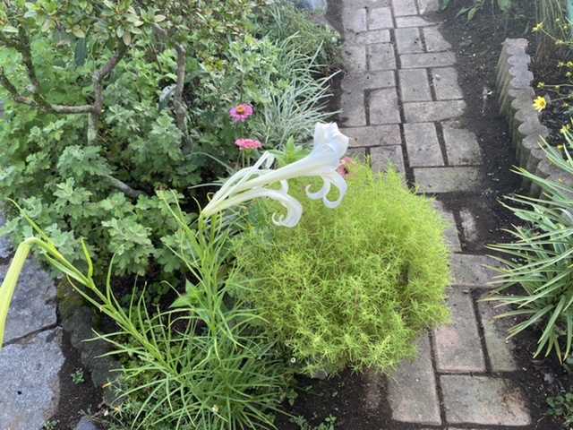 朝は雨だったので、午後の30分だけ、草取り。楽そうな、トレニアの咲くレンガ道をやっつけます。コボレからのトレニアは、キリなく広がるので、小径に沿って咲いているのだけを残しています。自然に、色のバランス良く咲いているわ。隣り地区にお住まいのOさんから、写真付きのラインを頂きました。あるお宅で、何十年に一度しか咲かないという、珍しい竜舌蘭の花が咲いて、地区で話題になっているとか。咲いた後は、枯れてしまうそうです。折角、知らせてくださったのだから、是非見たいな。ちょうど、猛暑が一休みしている間に、見に行ってきたいと思います。 花ブログランキングに参加しています。 応援のクリックをよろしくお願いします。 昨日のアクセス数 3471 昨日のランキング順 6 位