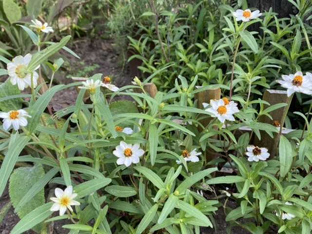 ジニアが盛んに咲いています。背の高い色とりどりの百日草が、咲きに咲いている足元で、その賑やかさを、グッと鎮めるように、静かに咲いています。その横には、ピンクのミニ薔薇。わずか20センチの高さです。八女津姫(ヤメツヒメ)、と言って、挿木したのを、頂いたのが、10年以上前。枯れもせず、ずっとここにいますが、大きくなりません。本当にヤメツヒメ? 調べてみてもよく分かりません。 花ブログランキングに参加しています。 応援のクリックをよろしくお願いします。 昨日のアクセス数 3688 昨日のランキング順 5 位