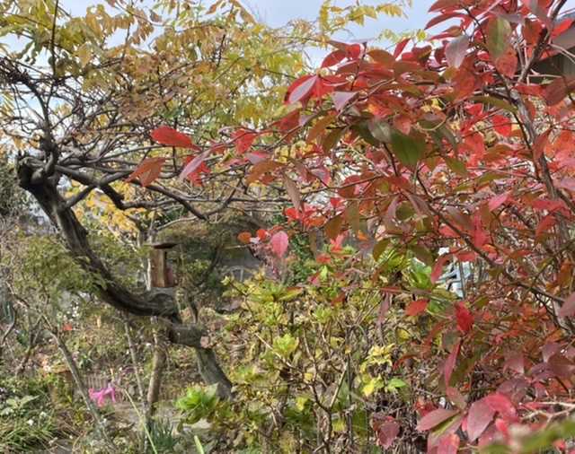 庭のブルーベリーの紅葉と、藤の黄葉が綺麗です。ある日、どっさりと葉が落ちて、冬が訪れます。ヒュウガミズキの黄葉も素敵です。早春に咲く花は、ツボミを膨らませ、準備中です。足元には、まるで釦のようなまん丸小菊が咲いています。可愛いです。昨日行った桐生市は、織物で栄えた町。織物に携わった富裕層の豪華な建造物が、数多く残り、保存されたり、古民家として利用されていたり。ぶらぶら散策していたら、どうぞ見学していって、と声をかけられました。「四辻斎嘉」という名の大正時代の古民家で、食事やお茶をしながら、休憩したり、落語などのイベントに利用するらしい。「自在庵」で食事をしてきたので、お腹がいっぱいで、申し訳ないけれど、お茶一杯頂けないと伝えます。今日は平日でお客さんも少ないし、知って欲しいから、遠慮なく見学してください、と案内してくれました。急な傾斜の箱階段。階段を利用した箪笥。この硝子が、昔のままで、素晴らしいな。 金庫と、築二百年の蔵。蔵は家と繋がっています。扉の厚さがすごい!桐生が栄えに栄え、札束が舞っていた時代だそうです。見学させて頂き、ありがとうございました。ちなみに、12月18日に、立川志の彦落語会があります。あのお座敷で、落語を聞くのも素敵ですが、その日は、友人のマンドリン演奏会に招待されていて、私たちは、お断りしました。 花ブログランキングにいます。 応援のクリックをよろしくお願いします。 昨日のアクセス数 1700 昨日のランキング順 6 位