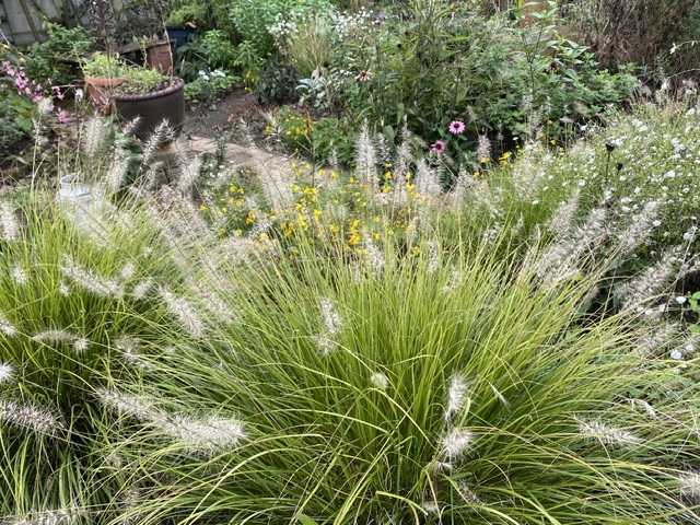 ペニセタム・リトルバニーの穂がとっても綺麗です。株元から、ひと握りを抜いて、簡単に増やせます。自然の野のような、いい感じになるのが嬉しくて、あちこち植えたら、それらが皆大株になり、ちょっと後悔。なんでもやり過ぎはいけませんね。奥にも手前にも、まっ白なカリメリスが盛ん。カリメリスも又、簡単に根づき、あちこちに植えています。これも、すぐに大株になり、でも、白い小花なので、邪魔な感じはしません。冬以外は、いつも咲いているような気がします。お直しを引き取りに見えたお客さん。何故か、妹さんも一緒です。お二人とも背が高く、横幅もあるので、玄関が狭い感じ。相談があるんですけれど、と切りだした話しは、お母さんが亡くなって、着物が残されていて、それを使って、ドレスを作って欲しい、と。だいぶ前ですが、店から頼まれて、着物ドレスを作っていた時期もあるのですが、そして、やってあげたい気持ちもあるのですが、いろいろ言い訳しながら(笑)、お断りしました。今の私には、裾丈や袖口をちょっと直しているのが、ちょうど良い感じです。要するに、面倒なことはやりたくないのでしょうね。これも、年齢のせいかなー。 花ブログランキングに参加しています。 応援のクリックをよろしくお願いします。 昨日のアクセス数 1881 昨日のランキング順 7 位