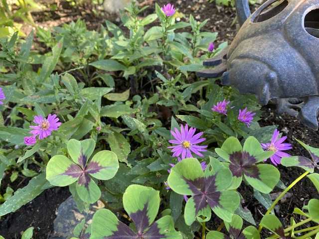 10月 1日にご紹介したピンク色のダンギクです。それから10日が経ち、今日のダンギクは早や終盤です。その時に、紫色のダンギクが消えてしまった、と書きましたが、消えてはいませんでした。小さな紫色の塊を見つけた時は、歓声をあげました。いいよねー、ダンギク!おまけに、四本も零れが出ていて、ツボミも付いています。こんな小さなことで、幸せを感じる朝です。背景には、何度も登場するカリメリスです。10ヶ所くらい、あちこち植えていますが、どんな植物とも馴染み、邪魔しない便利な花です。ちょっと、根を引き抜き、好きな場所に植えるだけです。Iさんが、お直しを持って見えました。自分ちで採れた栗を頂きました。ありがとう。お茶して、シャインマスカット食べて、一時間お喋り。 花ブログランキングに参加しています。 応援のクリックをよろしくお願いします。 昨日のアクセス数 2016 昨日のランキング順 7 位