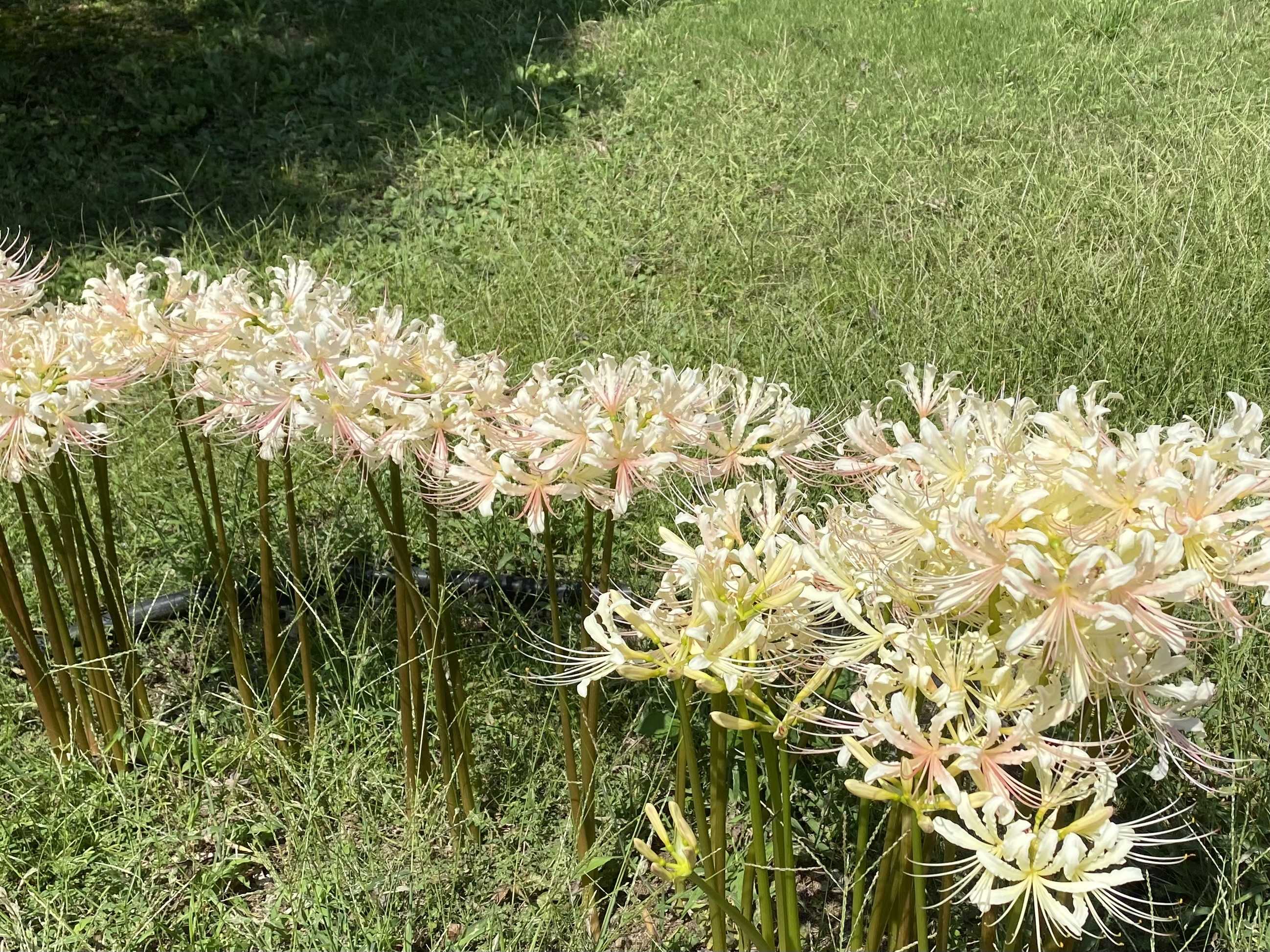 いつもの場所に、赤い彼岸花を、まだ見ないのに、どなたが植えたのでしょうか、白彼岸花が満開です。彼岸花とはよく名付けたものです。必ず、お彼岸に咲きますものね。でも、これは明らかに園芸品種です。自然な赤い彼岸花は、どうしたのでしょう。例年なら、土手には赤い彼岸花がいっぱいなのに。うちにも、彼岸花があった筈、と雑草だらけで、手入れの出来ていない庭の奥隅に見に行ったら、あらま、咲いていました。土手の彼岸花も、きっとこれからなのね。安心しました。今日は涼しいので、今から、この辺りの雑草を抜き、整備しましょう。予約していた吉田修一作「国宝(下)」が、順番が来た、と連絡あり、図書館へ行って来ました。(上)が一か月前で、もう映画も見てしまったし、すっかり忘れていました。(笑)こんな読み方は、やっぱり気が抜けてしまいます。と、思い乍ら良い加減に読み始めましたが、映画に描かれて無かった場面が次々にあり、どんどん引き込まれてしまいました。本と映画の、良さと違いを実感する作品です。 花ブログランキングに参加しています。 応援のクリックをよろしくお願いします。 昨日のアクセス数 1143 昨日のランキング順 5 位
