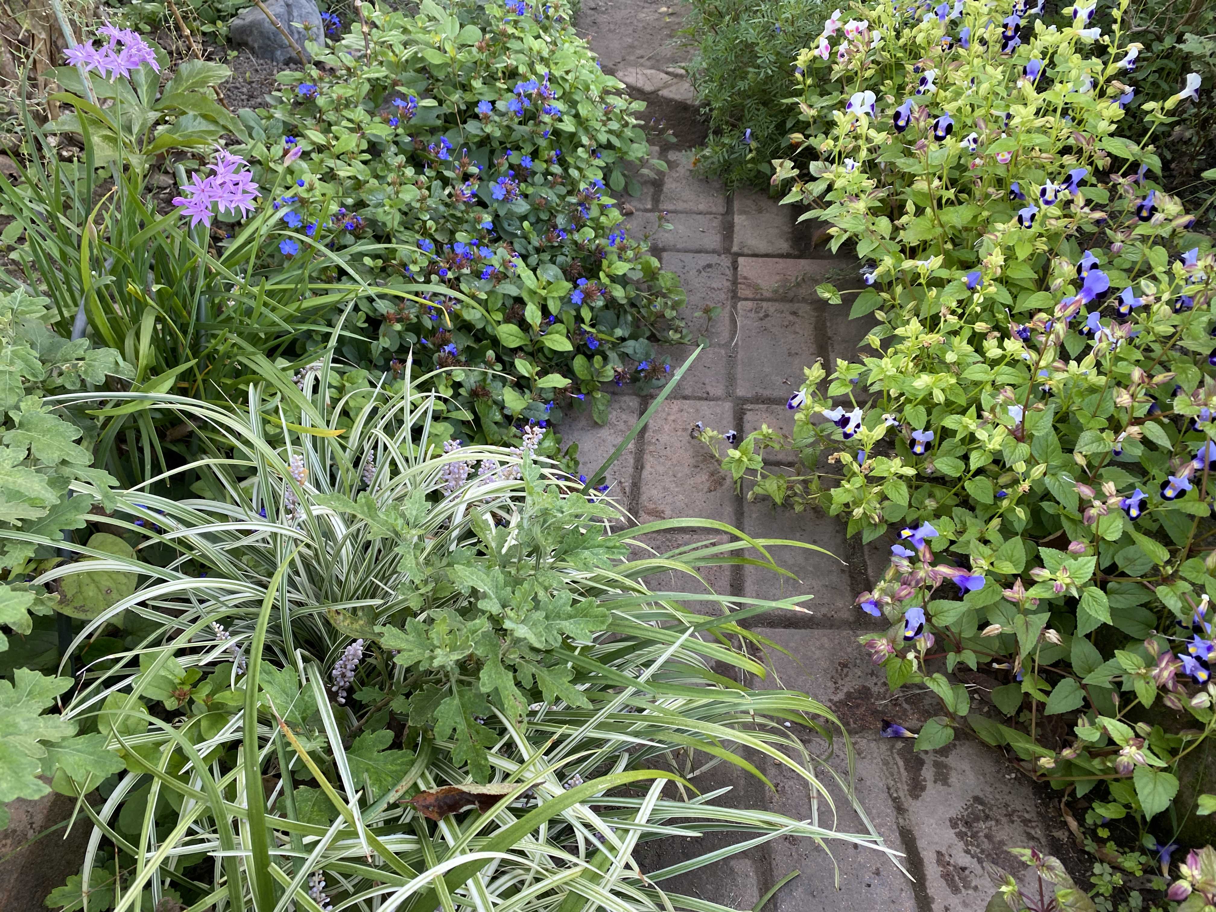 左がプルモナリア、右がトレニア、の小径です。プルモナリアは、宿根草。涼しくなってきて、花のブルーがひと際、濃い。トレニアは、一年草。もう少し咲かせて、タネを溢したら全部抜きます。来年も、コボレが芽を出し、同じ景色を作ります。反対側から見た小径。白ナスを頂きました。食べるのは初めてです。どう料理しましょうか。ここは前橋市。今、市長のホテル密会問題で、揺れています。応援していた女性議員が当選し、市長も女性だし、どんな前橋市になるのかな、と、期待していたのに、ホントがっかりしています。お若く、しっかりして綺麗で、信頼していたのに。まだ表明はしていませんが、辞職でしょうね。いま、ランチのお誘いがありました。(笑)昨日も言いましたが、自分から誘うの苦手ですが、誘われれば、大抵はOKしています。(笑)本来は、彼岸花の群生を見に行く予定でしたが、満開にまだ少し早い、ということで、行く日を後ろへずらしたので、良かったです。 花ブログランキングに参加しています。 応援のクリックをよろしくお願いします。 昨日のアクセス数 1734 昨日のランキング順 5 位