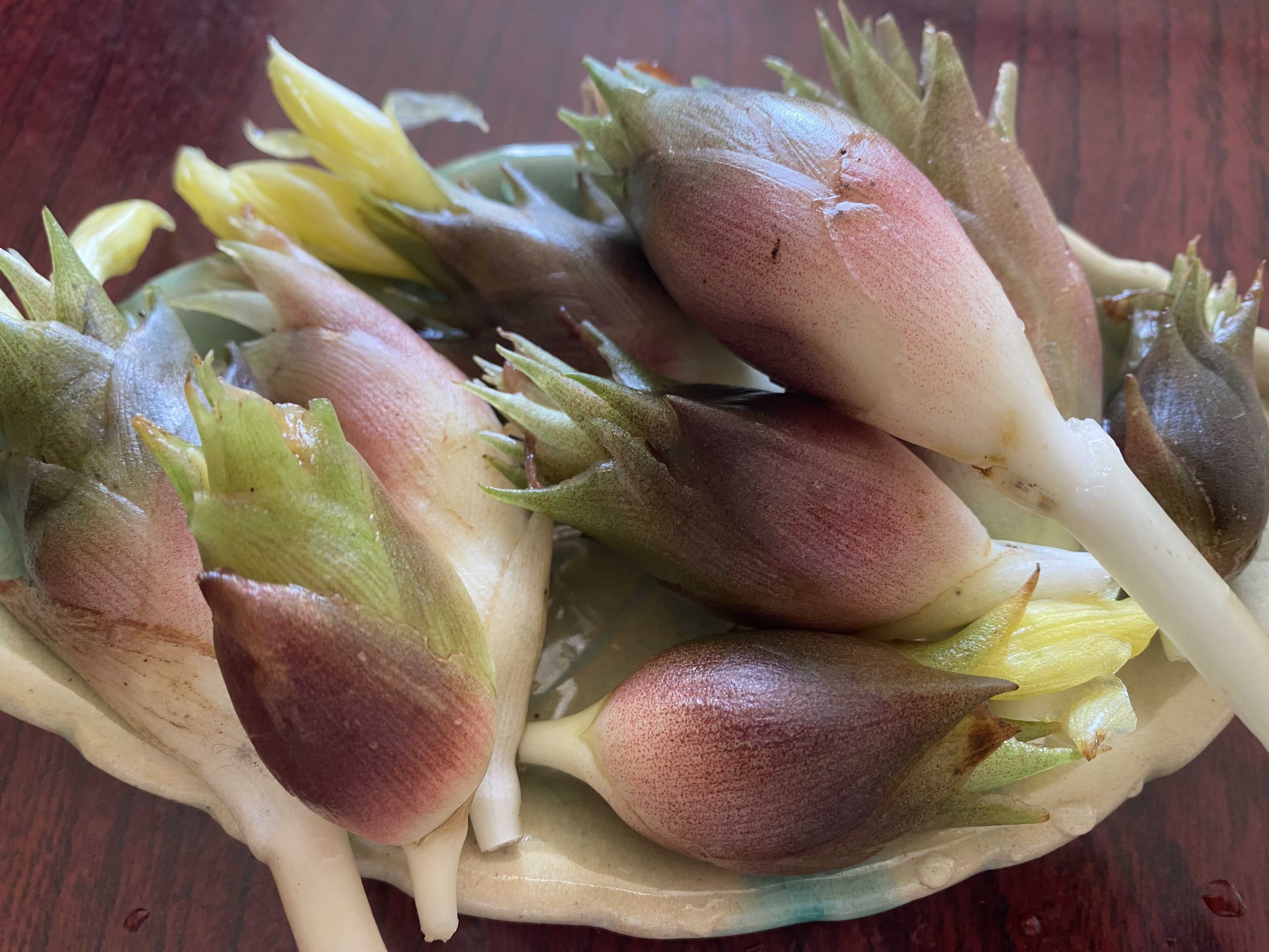 朝は、風が涼しくて、ちょっと秋を感じます。柿の自然落果が始まり、小さな実が落ちています。拾っては、ゴミ袋に入れていて、柿の木の下に生えているのですが、あ、ミョウガ!気づくのが遅くて、花が咲きそう。こうなると、中身はふかふかで、三流品ですが、勿体無いので、使います。(笑)刻んで塩をして、サッと茹でて、甘酢漬け。軽く重石してみました。すぐに、酢が赤くなってきました。ご飯にミョウガ甘酢漬け、白ゴマ、鰹節、大葉、梅、キュウリなどを混ぜてミョウガ寿司の出来上がり。簡単で美味しい、年一度は食べたいメニューです。副菜は、茄子のゴマダレと豆腐とワカメのサラダ。 花ブログランキングに参加しています。 応援のクリックをよろしくお願いします。 昨日のアクセス数 1441 昨日のランキング順 5 位
